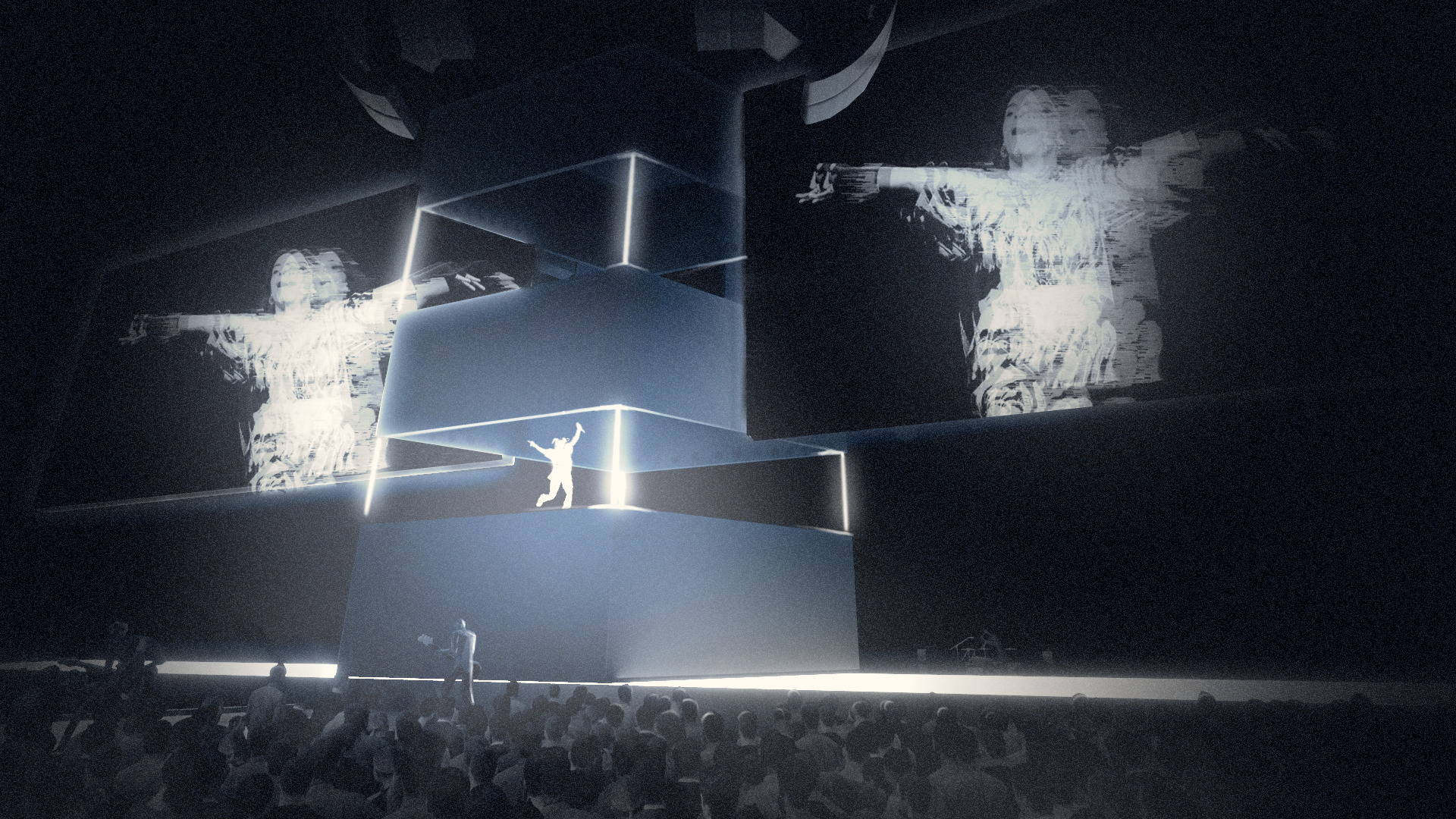 Using Blender, I developed 3D visualizations of potential stage layouts, helping to establish the overall look, form, and mood of the show’s immersive environment.