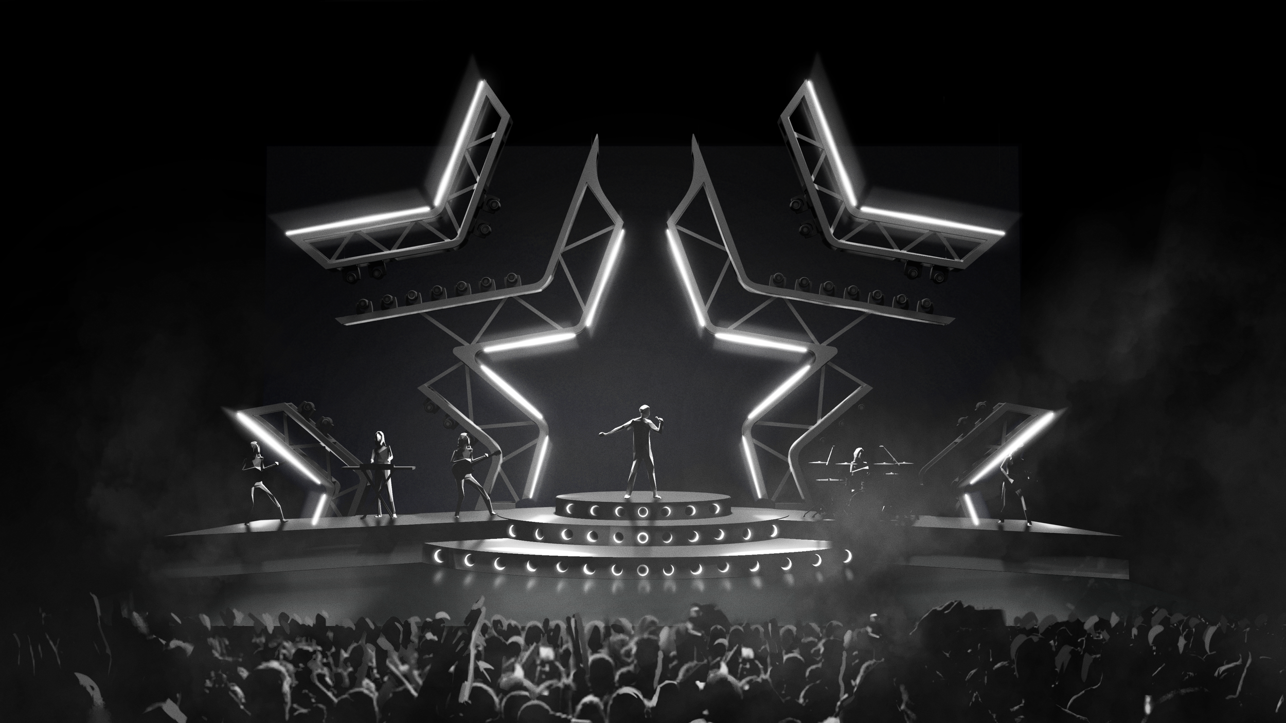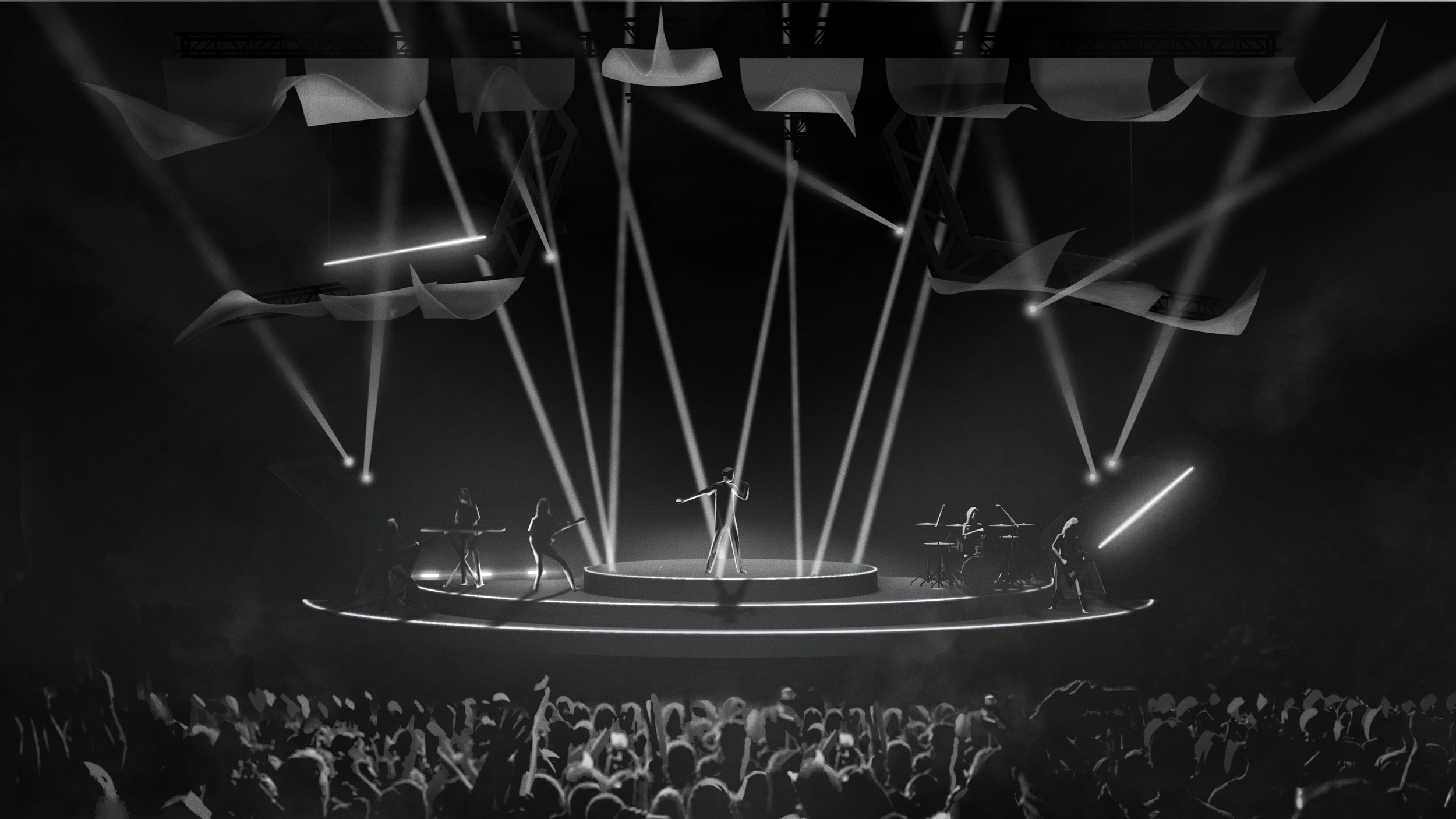 I was the Concept Artist for Conan Gray’s Found Heaven tour, collaborating with the Creative Director and Scenographer to develop concept art for key moments of the show. I explored stage design, props, and lighting to shape the visual atmosphere, while defining color palettes and motifs that created a cohesive yet emotionally dynamic performance.
